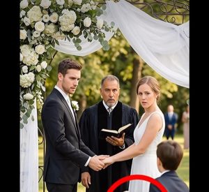 The wedding ceremony had already begun, and everything was unfolding exactly as planned. Soft music drifted through the garden, white chairs were lined in perfect rows, and guests sat quietly, smiling as the bride and groom stood hand in hand at the altar. Sunlight filtered through the trees, casting warm shadows across the aisle. It was the kind of moment people imagine for yearsโcalm, beautiful, and full of promise.