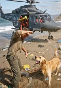 Leo joined in, using a piece of driftwood as a lever. Together, the man and the dog worked in a silent, desperate rhythm. Max used his powerful shoulders to nudge the side of the machine every time Leo pried it upward. Slowly, the heavy appliance began to shift.
