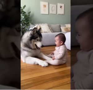 What made the scene truly special was not just the humor of the situation, but the deep connection between the baby and the husky. They did not speak the same language, yet they understood each other perfectly. The baby trusted the husky completely, while the dog watched carefully, never too rough, never careless.
