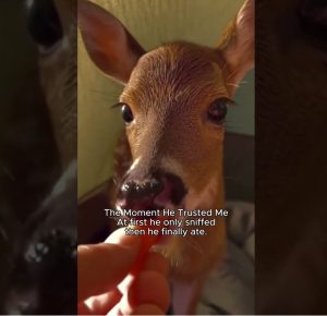 As the night stretched on, I listened intently for any sign of movement outside. Every snapping twig made my heart jump. I whispered softlyโnot words, just quiet soundsโmore for myself than for the deer, trying to keep the atmosphere calm. The fawn eventually lifted its head, looking at me with an expression that felt impossibly trusting for a wild animal.