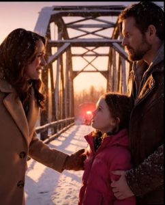 It arched gently over a narrow, frozen river, its metal rails dusted with snow. But what caught his attention wasnโt the bridge itselfโit was the figure standing on it.