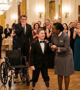 His fourteen-year-old son, Theo, sat in his wheelchair at the family table, wearing a miniature tuxedo that matched his fatherโs. Theoโs legs were paralyzed from a rare spinal condition diagnosed at birth.
