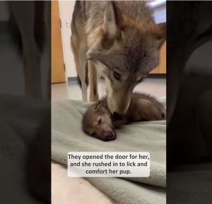 The driver of the car, initially confused, now understood the gravity of the situation. There, on the road, lay a tiny wolf cub, struggling and vulnerable, unable to navigate the dangers around it. The motherโs cries intensified, urging caution and demanding attention. The driverโs heart raced, and decisions had to be made in an instant. Slowing the car completely, they reached for something that could help without causing further panic. There was no time to overthink. The situation required compassion, courage, and a steady hand in the midst of chaos.