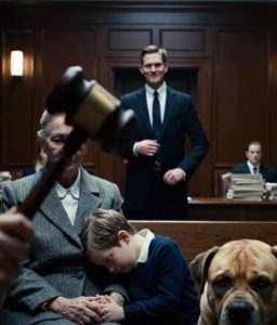 The courtroom shifted from order to tension in an instant. The judge called for calm, but even he seemed unsettled now, watching the scene unfold with growing concern. The dog moved closer to my grandson, positioning himself between the child and the man, his large body acting as a living barrier.