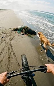 A cyclist and a dog become real lifesavers when they save a sea lion