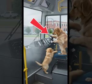 Rex barked sharply, alert and insistent, his body leaning toward the wheel as though trying to push Thomas in the right direction. The puppy yipped in response, nudging Rex and echoing his urgency. Thomasโ€™s heart pounded. He couldnโ€™t believe what was happeningโ€”he was alone in control of a massive vehicle, and one tiny slip could be catastrophic.