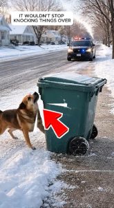 It stood in the middle of the road, partially covered in snow, its fur damp and clinging to its body. It wasn’t moving like a stray wandering aimlessly. It stood firm, directly in the path of the approaching police car.