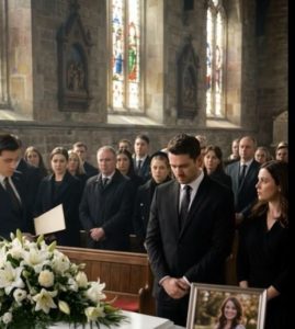 The sky was a dull, mournful gray, as if the weather itself mourned alongside the crowd gathered at the cemetery. Soft gusts of wind stirred the freshly turned earth, and the scent of damp soil mixed with the floral arrangements that lined the coffin.