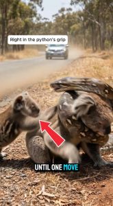 Without hesitation, Sarah grabbed her phone to record the moment โ€” not for fame, but as potential evidence for wildlife rescuers โ€” and jumped out. The giant python, easily over three meters long and thick as a man’s arm, had its coils wrapped multiple times around the koala’s torso and neck.