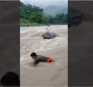 Seconds felt like hours, but instinct, quick thinking, and teamwork made the difference. The family of goats moved steadily, following their parents, and the dog’s guidance kept them on the narrow strip of land that would save them.