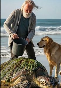 Concern replaced calm as he approached the creature, lowering himself slowly to his knees despite the stiffness in his joints. โEasy there,โ he murmured softly, his voice calm and reassuring, as if the turtle could understand him. He had seen many things in his years, but he had always held a deep respect for living creatures, no matter how small or silent.