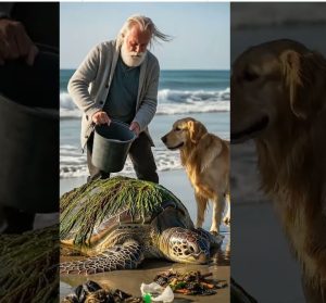Without hesitation, Harold knelt beside the tiny creature. His hands, though aged and lined with years of labor and love, were gentle as he carefully lifted the turtle and placed it on firmer sand, nudging it in the direction of the waves. He could feel its tiny body tremble beneath his touch, a fragile heartbeat in the palm of his hand.