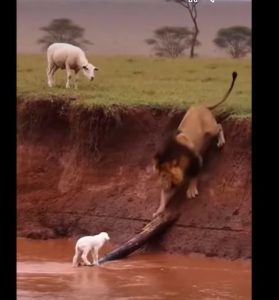 The lamb, though trembling, was now safe thanks to the lion’s intervention. Witnesses watching the scene from a distance were astonished. Lions and lambs are not typically associated with protection; such acts are rare and almost unheard of. This act of bravery challenged conventional ideas about predator-prey relationships. The lion, rather than pursuing its natural instinct to hunt, chose to defend a smaller, weaker creature. It was a vivid reminder that even in the wild, empathy—or at least protective behavior—can emerge in unexpected ways.