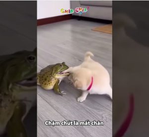 Whenever the puppy laid down, pretending not to care, the frog would slowly creep closer. Then, with small hops, it would circle around the puppy as if playing a silent game of chase. The moment the puppy noticed, he would gently chase after the frog, never barking, never snapping, only bouncing excitedly with soft paws on the floor.