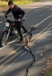 At first he thought it was a piece of trash blown by the wind. Then it moved again โ a tiny, frantic struggle. Marcoโs heart jumped. He hit the brakes hard, the Ducatiโs tires screeching as he brought the heavy bike to a stop just ten meters away.