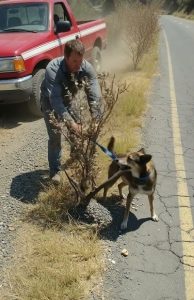 But as he slowed down, he realized the movement was not the bush at all. Hidden there, almost blending into the dry earth and tangled branches, was a dog.