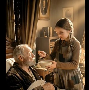 With effort, he swung his legs over the bed and leaned heavily on his cane as he hobbled to the door. The lock clicked, and when he opened it, he was met with an image that almost made him stumble: a little girl, no more than eight, standing in the twilight with a small bowl of steaming soup in her hands.