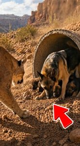 As the mountain lion moved closer, testing boundaries, the mother dog barked sharplyโ€”loud, forceful warnings that shattered the morning calm. Her voice echoed across the hillside, not only to intimidate the intruder but also to signal that these puppies were under her protection.