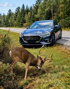 The deer froze for a moment, ears twitching, nostrils flaring. Elena knelt a few feet away, letting the animal see her clearly. She had done this kind of rescue before, but never alone on a remote stretch of road with dusk approaching. Still, she couldnโt leave the doe to suffer or bleed out.