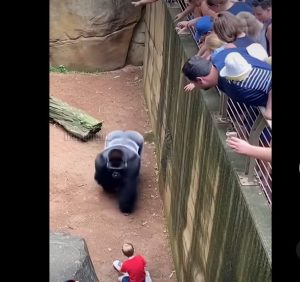 The ground near the barrier gave way under the boy’s foot. He slipped, yelping, and tumbled over the low fence that separated the visitors from the gorilla enclosure. In an instant, he landed several feet below, crying out in terror.