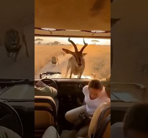 What began as a peaceful ride through a quiet reserve turned into a breathtaking and unforgettable encounter when a curious deer did something almost unheard ofย it climbed directly onto the safari jeep. Tourists froze in disbelief, unsure whether to be frightened, amazed, or simply honored by such a rare and gentle interaction. In a world where most animals avoid humans, this deerโs brave and unexpected move left everyone speechless.