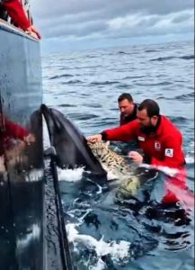 News of the rescue spread like wildfire. โTiny Snow Leopard Cub Saved by Dolphin with Help of Rescue Teamโ became international headlines. Videos from the boat showed Echoโs protective circles and the tender moment the cub was lifted to safety.