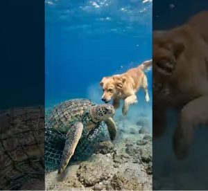 A True Hero with Paws! Watch the moment my dog saved a helpless turtle from a net. This connection will melt your heart!