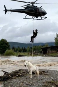 โIโve got a live rescue situation by the east river bend,โ he reported quickly. โSmall horse in fast-moving water. Iโm deploying air support.โ