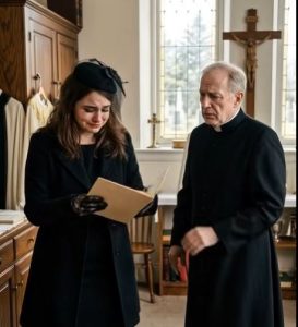 The priestโs hands were shaking when he approached me, the thin fingers clutching the edge of the vestry door like a lifeline. โYouโฆ you need to come with me,โ he said, his voice strained, quivering as if carrying a weight far heavier than his shoulders could bear. I followed him hesitantly, my eyes lingering on the rows of mourners still lingering in the church. Something in his expression told me this was no ordinary conversation.