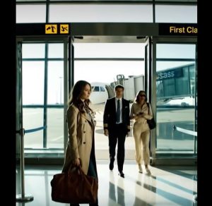 A few minutes later, a man in a tailored suit boarded and walked straight toward her. He leaned down slightly, speaking softly, respectfully. She nodded as he spoke, listening with quiet authority.