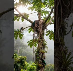 From dawn until dusk, he works tirelessly, twisting and threading, using nothing but instinct and persistence. The first nest is just the beginningย soon, dozens of others will connect to it, forming a network of spherical homes that hang like lanterns from the branches.