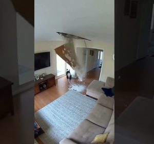 But before she could reach the crib, a terrible sound filled the airย a loud, tearing crack. A section of the ceiling, weakened by years of water damage and the violent wind, began to collapse.