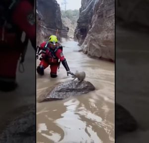 The rangers quickly coordinated a plan to help. They knew the canyon was dangerous, even for humans trained in rescue operations. Every step had to be calculated to avoid adding risk to the coyote or themselves. One ranger prepared a rope harness, another secured the line from a higher ledge, and a third monitored the current, timing the safest possible approach. Even with preparation, the outcome was uncertain. Coyotes are resilient and intelligent, but the floodwaters had created a situation that defied instinctual solutions.