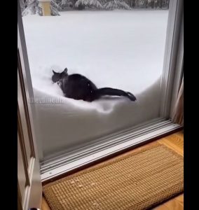 Oliver’s first encounter with deep snow was a tiny surprise that quickly escalated into a miraculous rescue mission. As he placed his first paw onto the surface, his brain performed a manual reset of his expectations. To a cat, snow is a disaster of physics—it looks like a solid floor but acts like a stray cloud that swallows you whole.