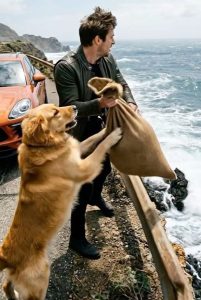 A young golden retriever named Bella had been wandering the shoreline for days, her golden coat matted with sand and salt, her ribs showing beneath her once-beautiful fur. She was desperately thin, but her eyes still burned with determination.