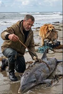 He rushed forward, kneeling beside the stranded animal. The dolphinโ€™s breathing was shallow, its body weak against the sand. Its skin was already dryingโ€”a dangerous sign.