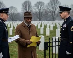 A black SUV screeched to a halt by the cemetery gate. Doors swung open, and out stepped General Marcus Holloway, a four-star general known across the military for his integrity and leadership. The crowd fell silent. His eyes immediately scanned the scene, landing on the elderly veteran.
