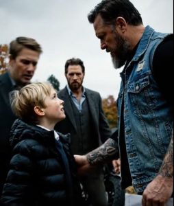 Near the far end of the cemetery, a small boy stood in front of a freshly placed grave. He couldnโt have been older than eight or nine. His black jacket hung slightly too big on his small shoulders, and his eyes were red from crying. In his hands, he held a folded piece of paper, gripping it tightly as if it were something incredibly precious.