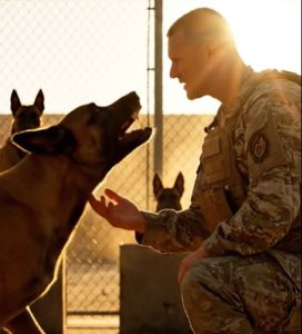 Even from a distance, it was easy to see that Rex was no ordinary dog. His muscular frame was lean and powerful, built for speed and precision. His dark coat was marked with faint scars along his shoulder and muzzle, silent reminders of years spent in dangerous operations. Rex had served alongside military units overseas, detecting explosives and protecting soldiers in environments where every second could mean life or death.