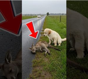 Cooper began to lick the tiny creature’s head, his warm breath providing the first bit of heat the joey had felt in a long time. The pup seemed to understand the fragility of the situation. He didn’t try to pull it out; he simply acted as a living radiator, curling his golden body around the mother’s pouch to shield the survivor from the rising wind.