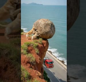 Finally, with a combination of precise maneuvering and the dogsโ guidance, Tom brought the tanker to a stop, mere inches from the cliffโs edge. The waves crashed over the road, sending a surge of seawater spraying high into the air. Tom sat in disbelief, his hands trembling, sweat and sea spray mixing on his face. The dogs barked again, triumphant, their mission complete.
