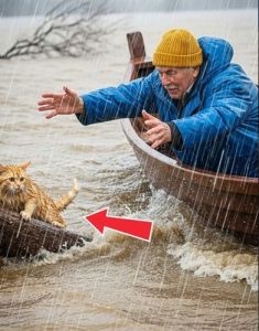 At first, he thought it was just a piece of debris floating near a partially submerged fence. But after focusing his eyes more closely, he realized it was moving slightly. A faint sound reached his ears through the wind and rainโ€”a weak, desperate meowing.