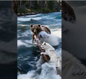 In the heart of the northern wilderness, where the mountains touch the sky and the rivers run deep, nature showed once again how unpredictableย and deeply emotionalย it can be. What began as a peaceful afternoon by the river turned into a breathtaking moment of courage and compassion when a powerful grizzly bear came to the rescue of a struggling wolf caught in a deadly riptide.