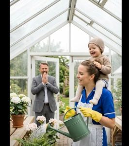His daughter, Lily, crouched beside a row of blooming ferns, humming softly as she carefully watered each plant. She had grown so much in the months he had been away โ taller, confident, yet with that same delicate innocence that had once made him ache with love for her.