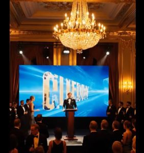 The grand ballroom shimmered with golden lights, crystal chandeliers hanging from the high ceiling like frozen stars. Soft music floated through the air, blending with the elegant laughter of guests dressed in expensive suits and glittering gowns. It was a night of luxury, pride, and spectacle โ a night designed to impress the cityโs most powerful people.
