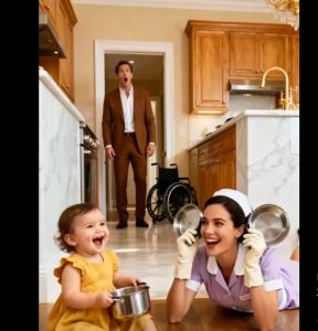 That night, Daniel sat alone in the living room, watching the kitchen camera one last time. Lily was there, filling a bowl with water, humming softly again—but this time, the dog was just outside the door, safe, fed, and no longer invisible.