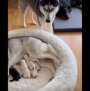 The familyโs foster dog, a snowy-white Samoyed named Pearl, had just given birth.