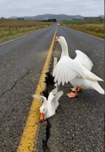 As he drove closer, he noticed something tangled around the duckโ€™s leg. A thin piece of plasticโ€”possibly part of a torn grocery bag mixed with fishing lineโ€”was tightly wrapped around its foot. The plastic trailed across the road and had become snagged on a piece of debris.