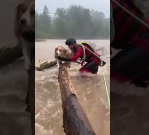 When Elias finally reached the log, the most incredible thing happened. Max, who had been terrified and shaking, suddenly went calm. It was as if he recognized that this human was his lifeline. Elias managed to grab Maxโ€™s collar and clip a safety carabiner to it.