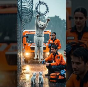 Late one evening, a faint but desperate cry echoed from the corner of a quiet street. It was not the sound of a child or a person it was the soft, painful meowing of a mother cat trapped in a cruel barbed wire fence. Her pristine white fur was caught and torn, and every attempt to move only caused her more pain. Yet even in agony, her eyes reflected fear not for herself, but for her kittens waiting for her return.